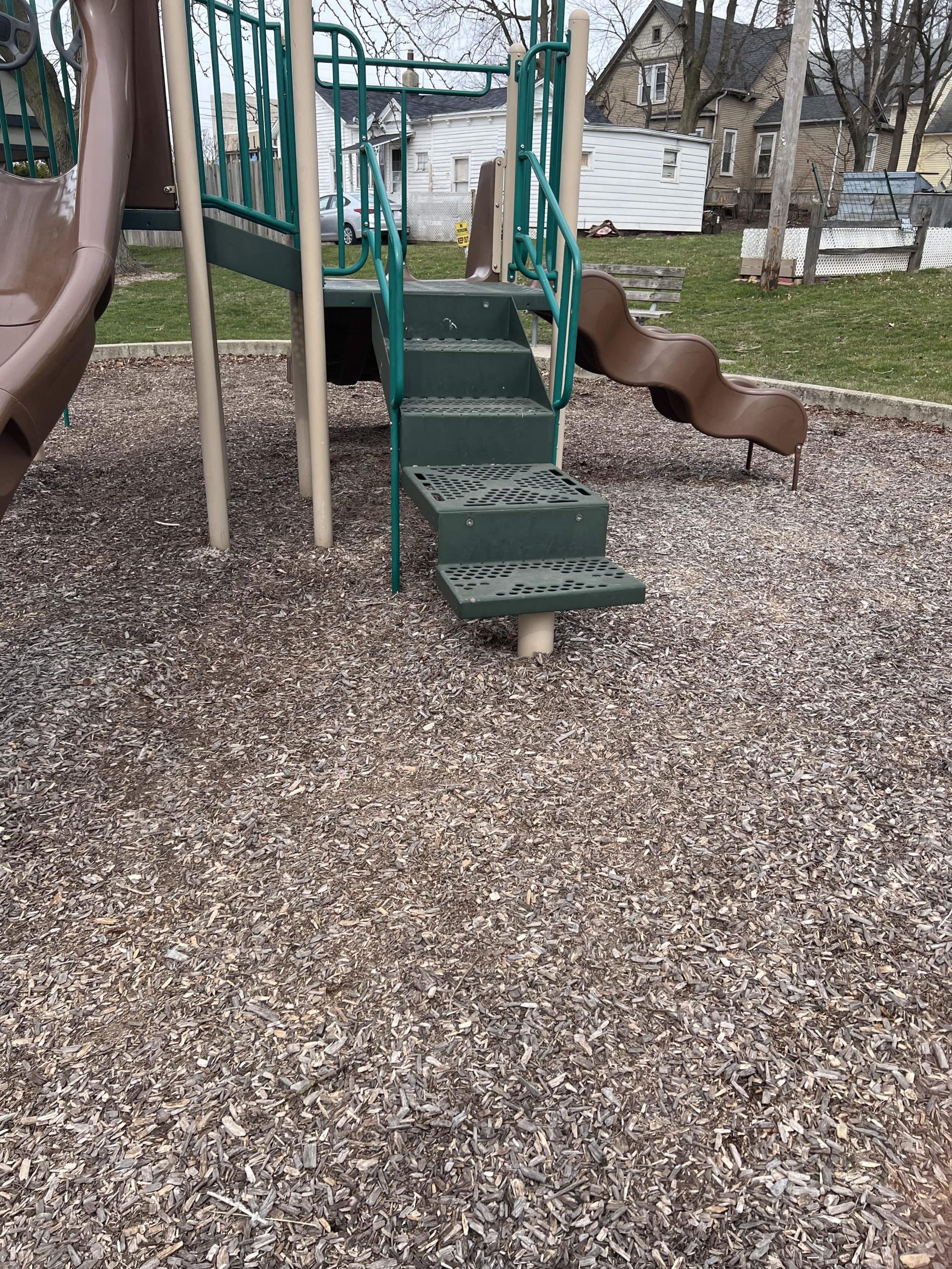 | Elevated play components connected by ramps? | x | No ramps connecting elevated play. |